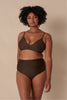 The Myrta high waisted bottom is a modest alternative to the Santiago Bottom, with a full coverage behind and gathered ruched front panel detail. Designed to stay in place in the surf and contour your curves in the sun.